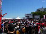 で、フリー走行が終わると、ショップやチームのブースが並ぶ広場へ。