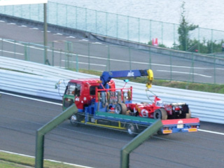その後、運ばれるフェラーリのマシン…。