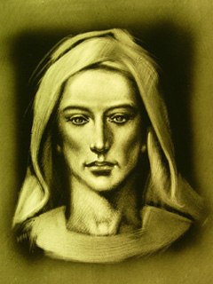 彼は女性の顔を描いていたんだけど、まるで砂でも掃いて彫刻かなんかを浮き上がらせるかのようでした。